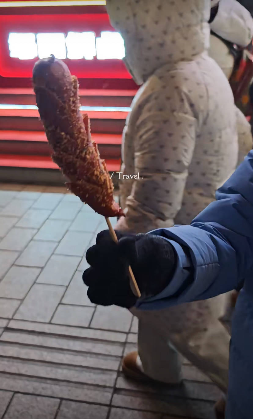 哈尔滨街头的着花肠,看着好大个。这样大一根,胖妹我方吃完的话猜测就不需要吃饭了。