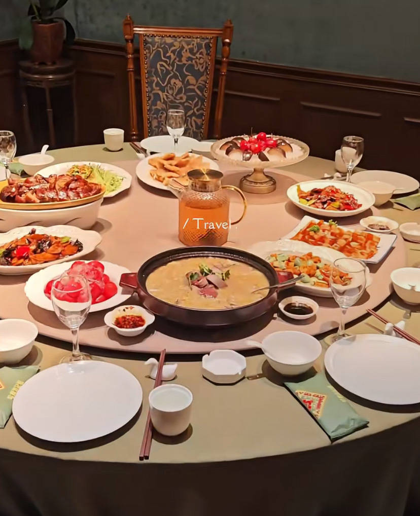 除了吃街边的小吃,他们还定了一个相比有作风的餐厅,好好地坐下来吃一顿热乎饭。