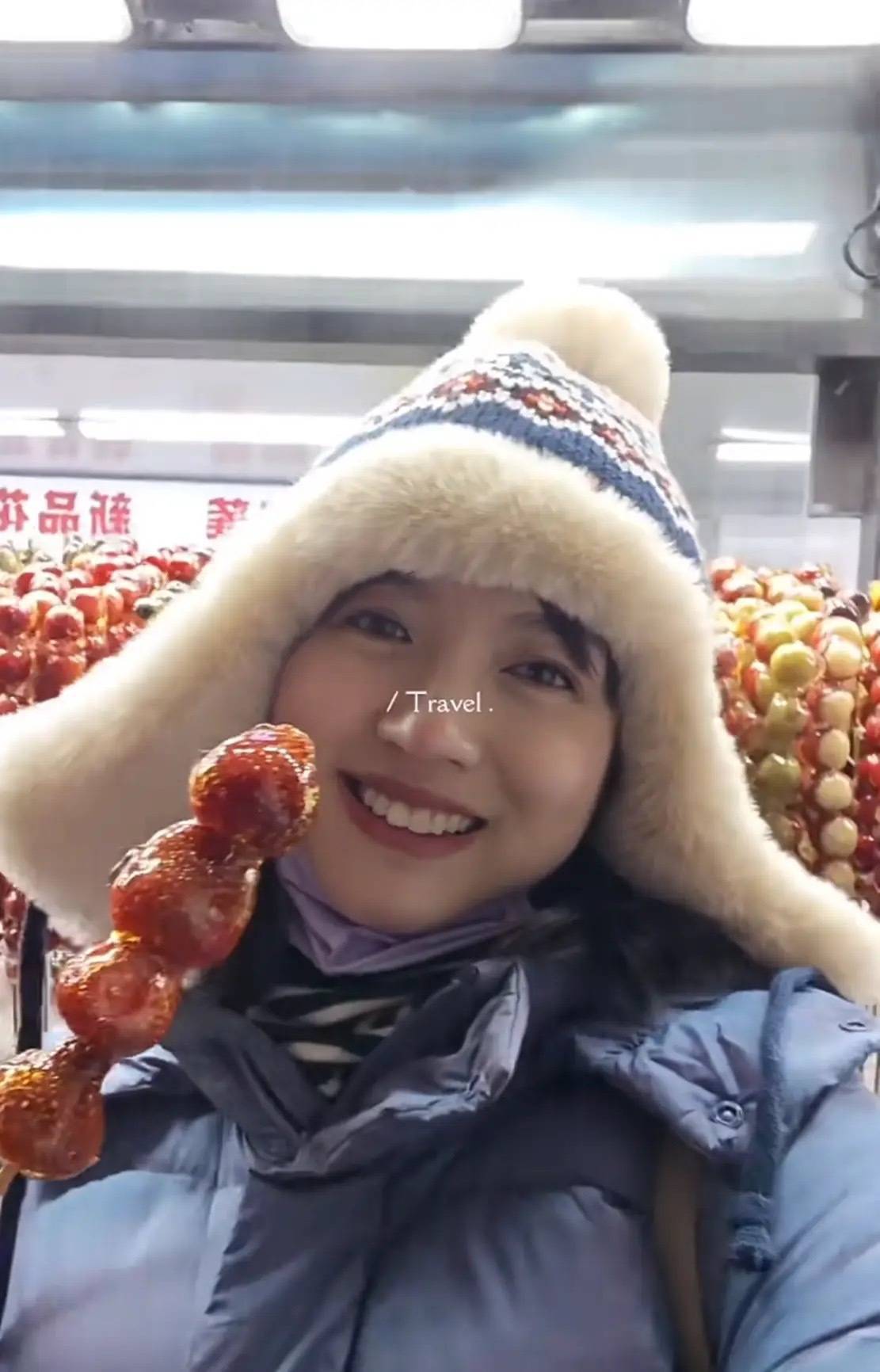 到哈尔滨天然要尝试各式好意思食,哈尔滨的冰糖葫芦齐比别的场地要大。张梓琳拿着一串冰糖葫芦,天然戴着帽子却也冻得鼻尖通红。