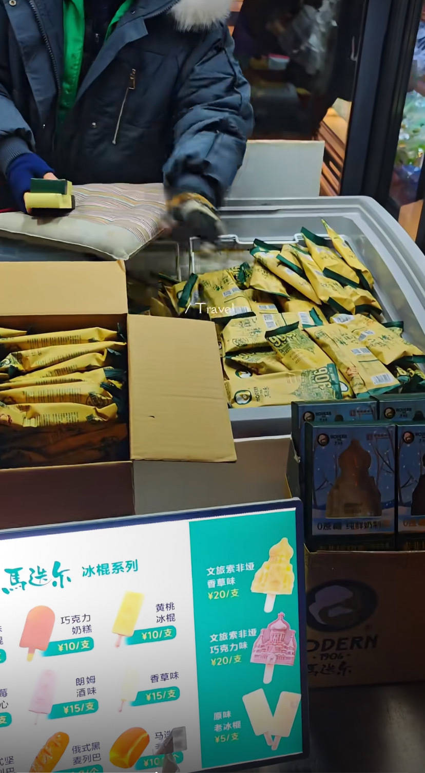 有文创雪糕、也有冰棍,还有各式烤肠、列巴、冷饮,出来旅游就是该吃吃该喝喝。