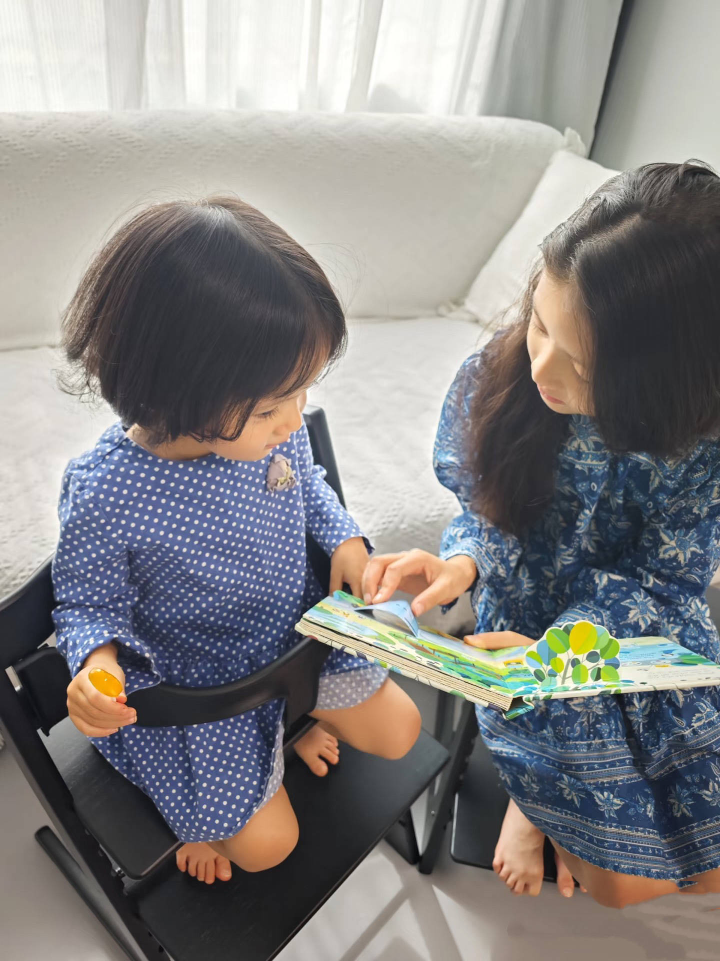 两个男儿一天天长大,她们齐很爱彼此。姐姐会陪着妹妹通盘看绘本,带着妹妹玩耍。